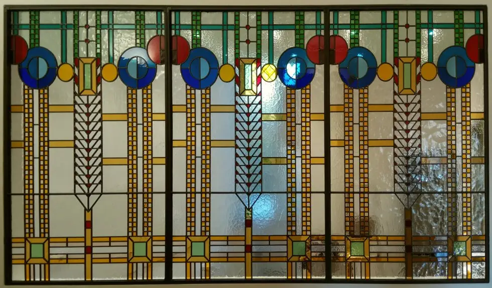 Su richiesta questa vetrata richiama lo stile decò di Fran Lloyd Wright, è stata creata come divisorio fra la cucina e l’ingresso dell’appartamento.